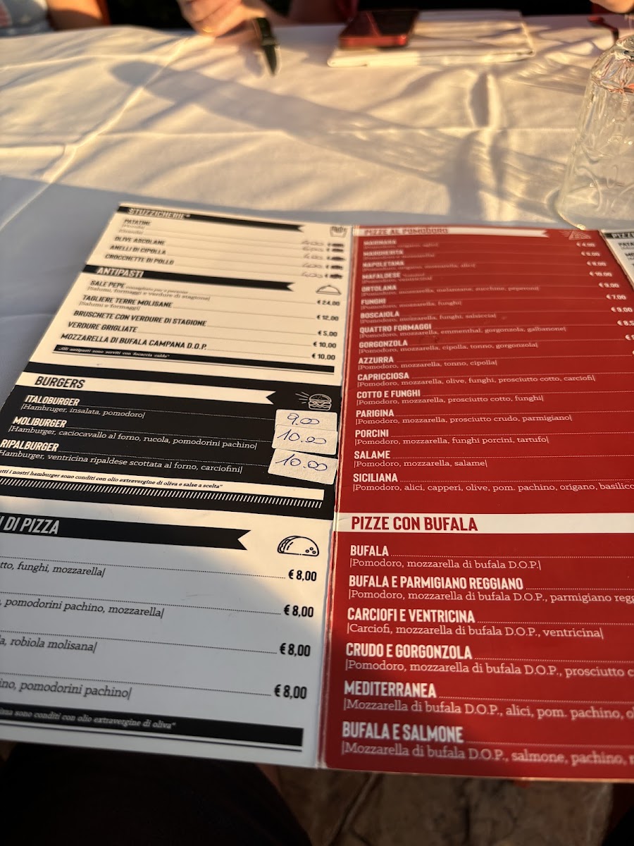 Highlights like the Margherita Con Salsiccia Di Fegato Stagionata, Pizza Con Funghi E Salsiccia, and Bufalina A Sale E Pepe showcase traditional flavors with thoughtfully paired toppings. Light starters such as the Tagliere Misto complement the main dishes, while desserts like Tiramisu offer a familiar end to the meal.